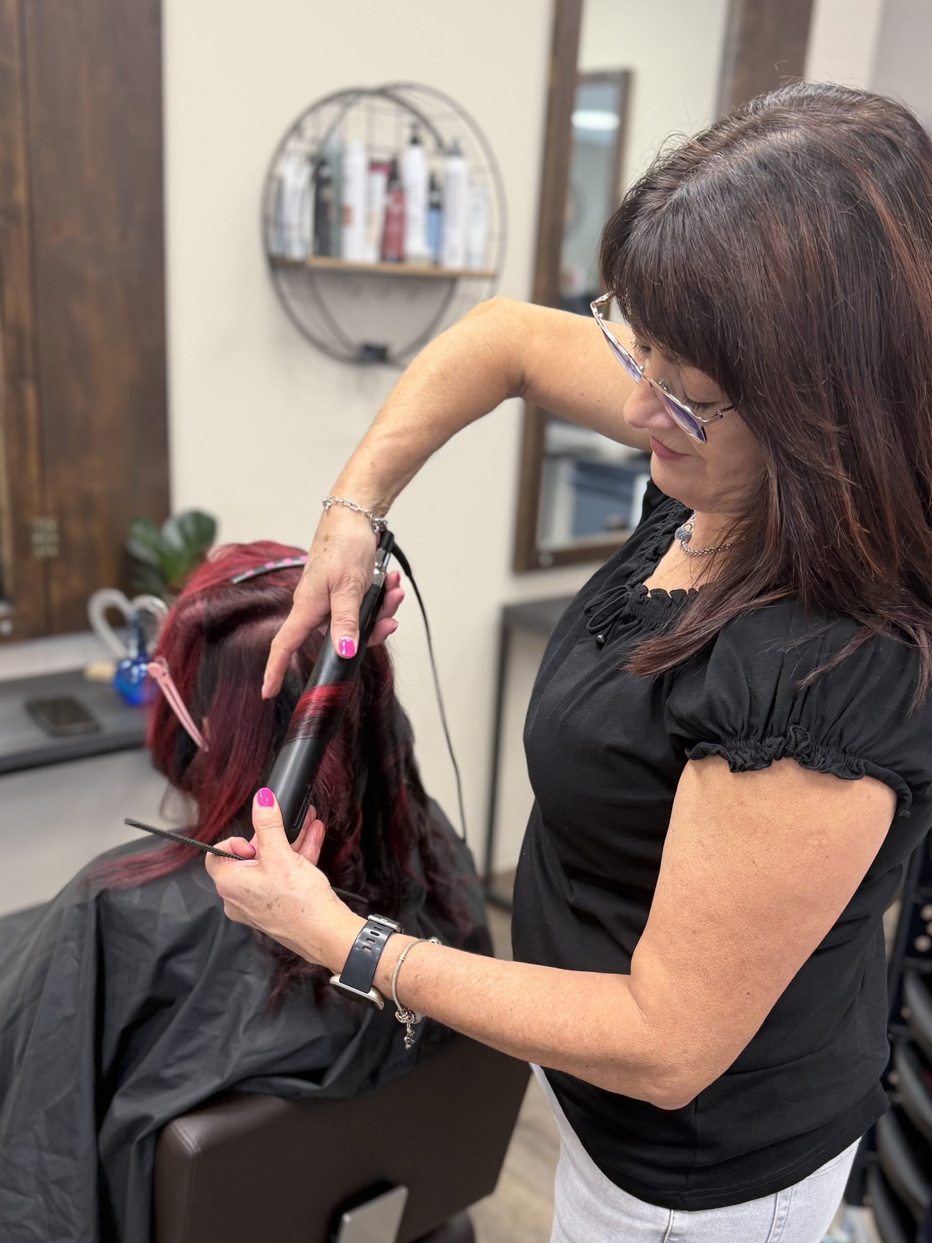 Wir arbeiten mit Revlon und Goldwell für brillante Farben und gesunde Haarpflege.